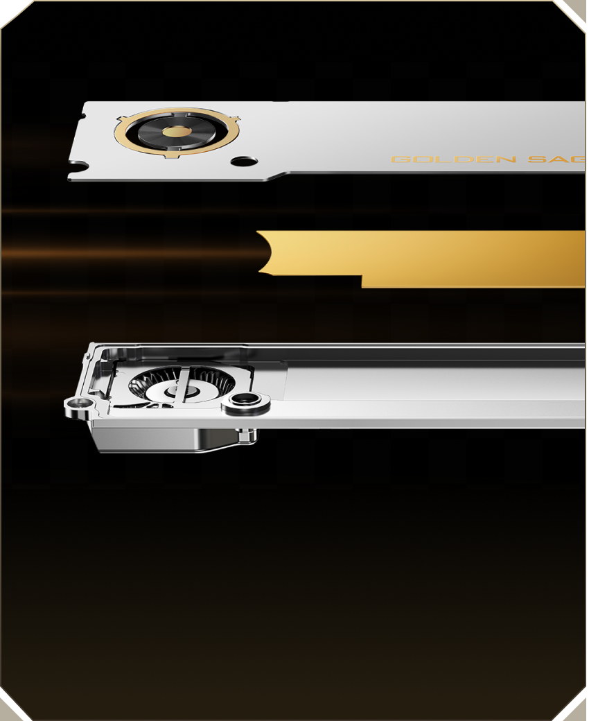 The REDMAGIC Golden Saga Limited Edition features a silver alloy air duct—crafted with one of the best thermal conductors (429 W/m•K) and enhanced with gold-plated VC heat dissipation fins. This advanced design maximizes heat dissipation, unleashing the full potential of the Snapdragon 8 Elite chip.