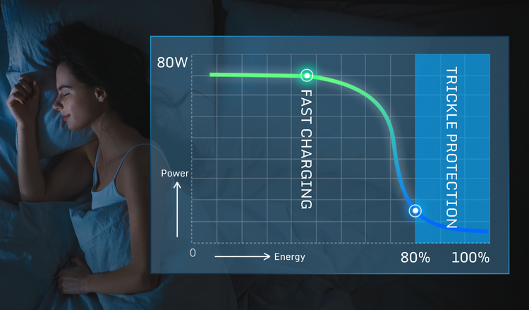 Based on a device’s battery percentage, the adapter switches between fast and trickle charge to ensure that charging throughout the night does no damage.